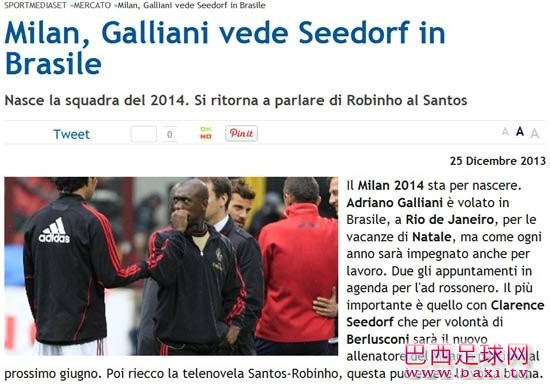 12月25日,是西方传统的圣诞节,但据意大利《慢镜头》消息,加利亚尼在这一天登上了飞赴里约热内卢的班机,加总此行有两个最主要的目的:一是说服西多夫接替阿莱格里担任米兰的新教练;二则是与桑托斯商讨罗比尼奥的 ...