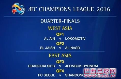 北京时间6月9日,2016赛季亚洲冠军联赛8强抽签仪式举行。最终经过抽签,鲁能将对阵首尔FC,上港将对阵全北现代。 本届亚冠联赛有上海上港和山东鲁能两支球队进入8强,他们与韩 ...
