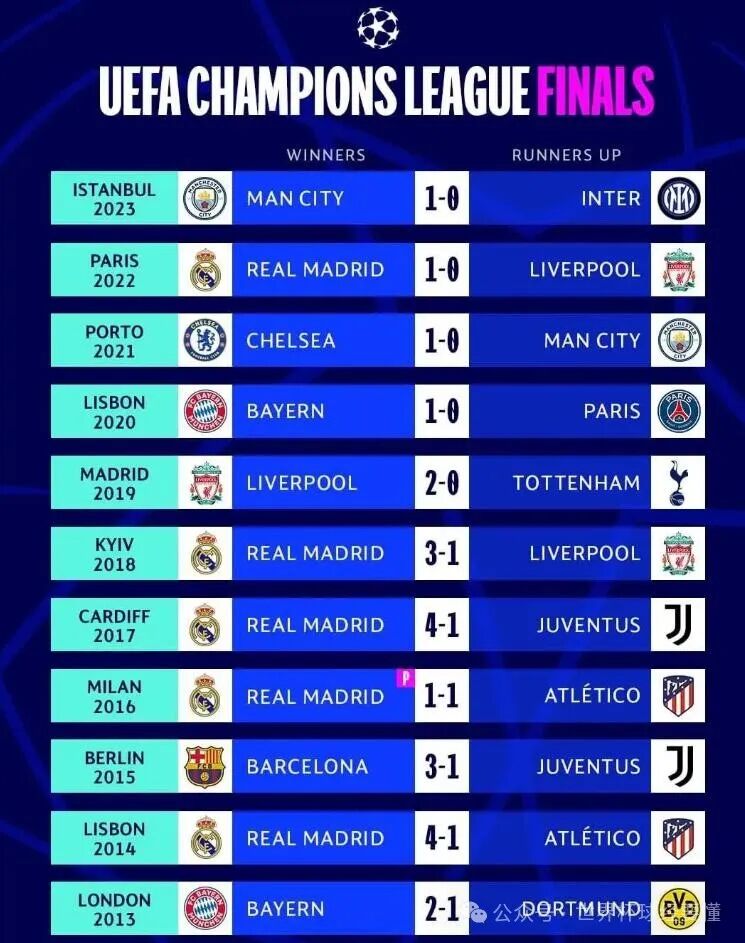 一方面近10年欧冠决赛中,最近这四年都是1:0小胜格局;